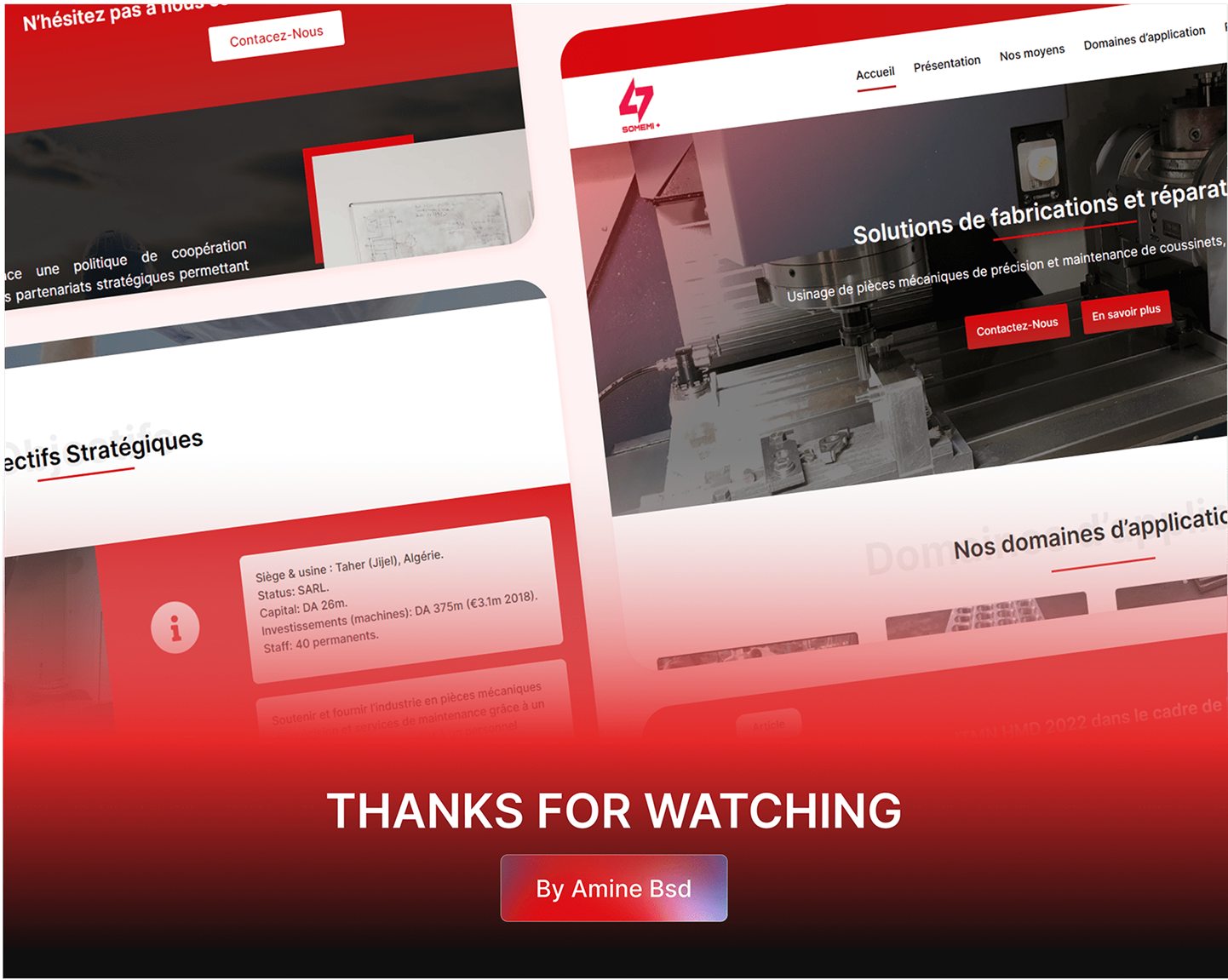 J'ai assuré le design sur Figma et l'intégration complète sur WordPress du site vitrine de Somemi+, une entreprise algérienne spécialisée dans la fabrication de précision de pièces mécaniques pour les secteurs de l'aérospatiale et de l'aviation. Le défi était de concevoir une présence en ligne à la hauteur de l'exigence industrielle de l'entreprise — crédible, professionnelle et capable de refléter le savoir-faire technique d'une société opérant sur 10 000 m² avec des équipements de pointe. J'ai opté pour un design épuré et rigoureux, mettant en valeur les capacités de production, les certifications et les services de maintenance, tout en rendant l'information accessible à une clientèle internationale.